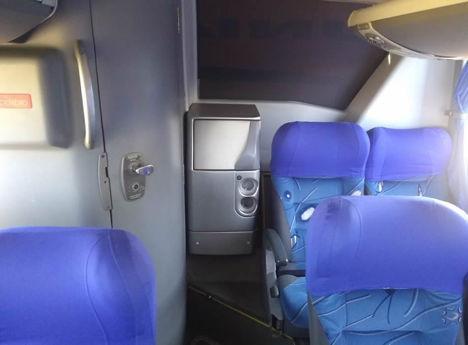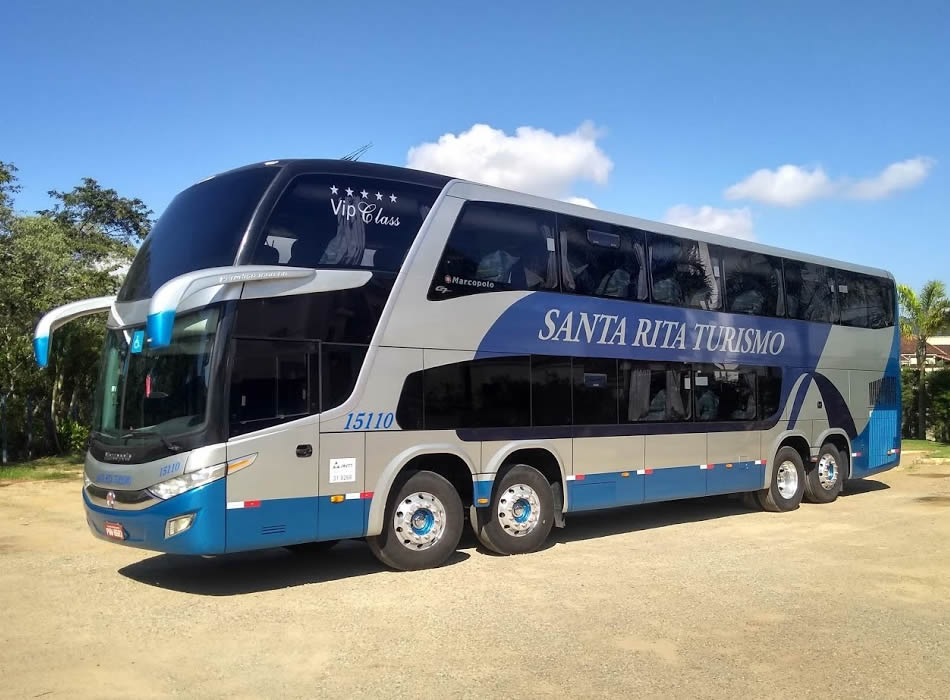 - 56 Lugares executivo, Ar-condicionado ( Piso Inferior: 12 Poltronas em tecido semi-leito, encosto de pernas, geladeira, 1 monitor, wc, sala de jogos, wifi. / Piso Superior: 44 Poltronas em tecido semi-leito, encosto de pernas, 2 geladeiras, 5 monitores, wifi.