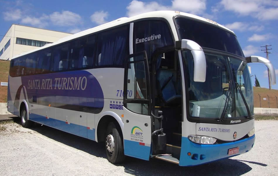 - 46 lugares, ar-condicionado, WC,cd Player, som independente para o salão de passageiros, poltronas reclináveis, monitores TV com DVD, janelas panorâmicas com película fumê, geladeira.